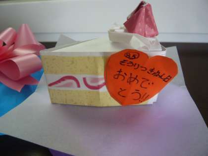 今朝、登校時に4年生の女児が、バースデーケーキをプレゼントしてくれました。