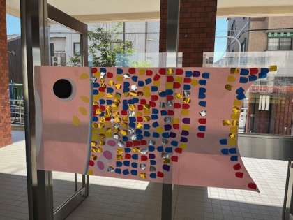 春のあいさつ週間がスタートしました。元気なあいさつができたら、シールをもらえる取組ですが、今回は、「こいのぼり」です。色様々なうろこシールをもらって、こいのぼりに貼っていきます。
