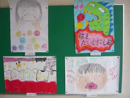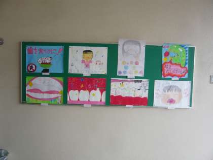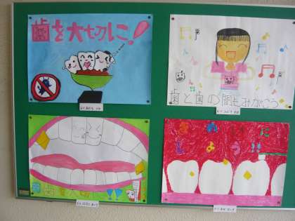 保健室近くの掲示板に「歯の健康ポスター」が掲示されていました。