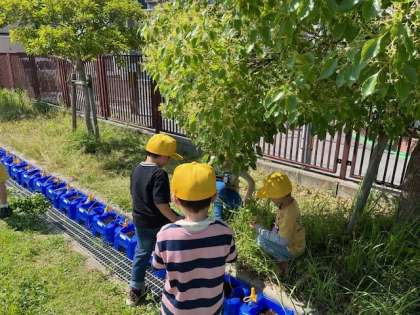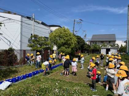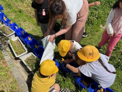 1年生の春見つけの一コマ。学習園の手入れも頑張りました。