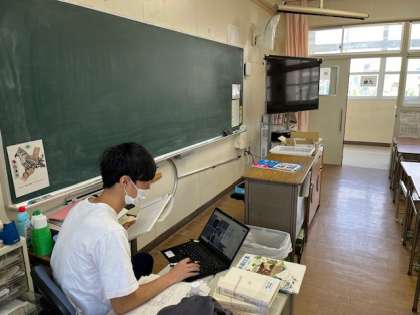 5月25日(土)は学校行事で登校日でした。この日の朝各家庭で、前日に持ち帰っている一人一台端末PCを使って、オンライン通信テストを行いました。オンラインで、朝の会、出席をとり、学校行事のため、登校しました。朝の大変お忙しい中、サポートしていただた保護者の皆様、ご協力ありがとうございました。