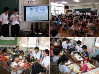 ★電子黒板で、中学生自作の紙芝居をみました。