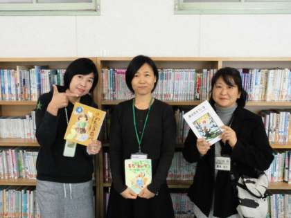 毎週金曜日の図書館開放で来ていただいている図書館ボランティアの皆さんと学校図書館補助員の先生との対面です。これからも図書館教育の充実を目指してよろしくお願いいたします。