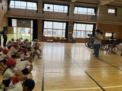 本日、4年生は、ゲストティーチャー(心身障がい者リハビリテーションセンター)を招き、「車いす体験講習会」を実施しました。車いすの講習、実践型の体験を通じて、車いすの適切な操作や介助方法を学びました。車いすを利用する人たちの気持ちを理解することが大切であることも学びました。
