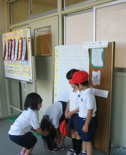 子どもたちは、友だちとうしでチェックしたり、「先生、みて〜」と