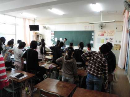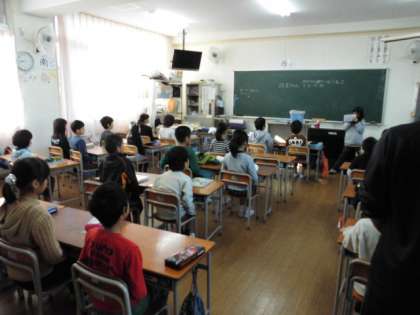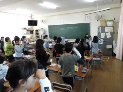 4年生、3年生の教室でも、ノビノビたいそうと健康委員会児童による健康チェック、姿勢チェックなどが行われていました。最後は、みんなで良い姿勢を10秒間キープです。