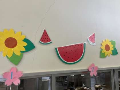 「夏祭りのだんじりを盛り上げるために、給食で夏野菜をたくさん食べて体力をつけることができるように工夫しました。お祭り気分を味わえるように彩りも考えました。」