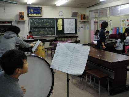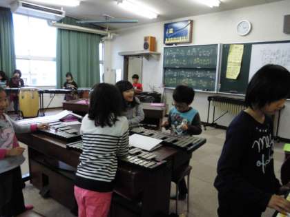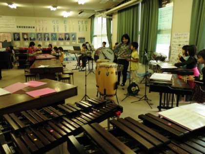 多くの楽器に挑戦して、友だちと一緒に取り組んでいます。