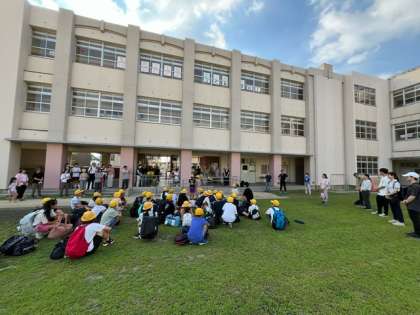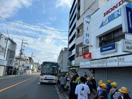 5年林間学習、出発式を終え、予定通り、ハチ高原へ出発します。