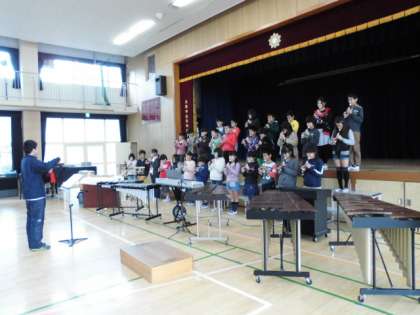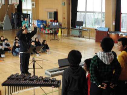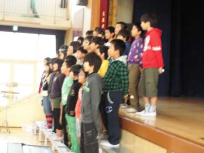 合唱「流星群と空と海」、リコーダーで「虹の彼方へ」を担任の指揮で発表しました。