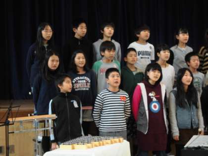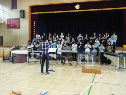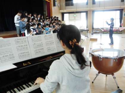 子どもたちは、しっかりと指揮を観ながら、声を出したり演奏したりしています。
