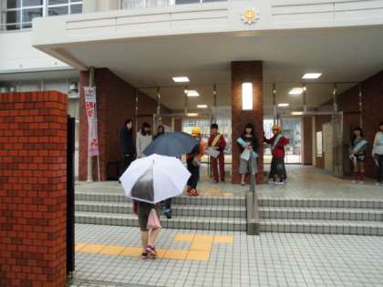 あいさつ週間も4日目を迎えました。小雨が降る朝です。