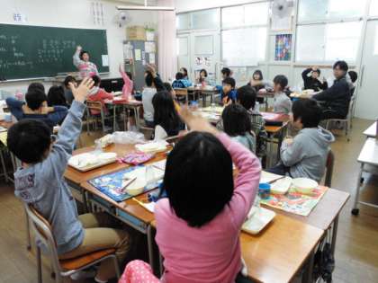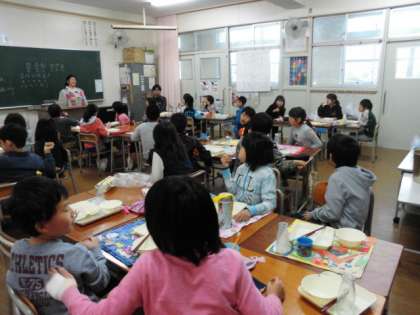 ウリチングのソムセンニムは、毎週水曜日の本校ウリチング開講日に子どもたちと給食を通して交流をしていただいてます。