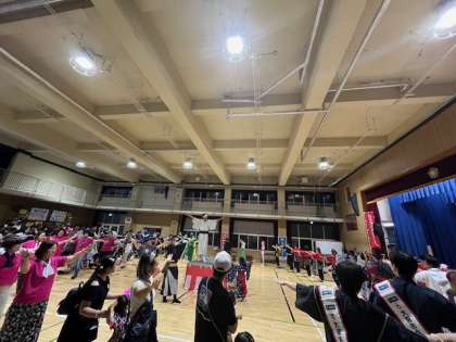 22日の日曜日、本校にて、ぼんおどりの夕べ、「ひがもも祭」が開催されました。今年は、講堂をメイン会場とした屋内開催でしたが、たくさんの方が来場し、大変盛り上がりました。子どもたちもたくさん参加し、楽しい時間を過ごすことができました。お世話していただいたすべての皆様にお礼申しあげます。ありがとうございました。