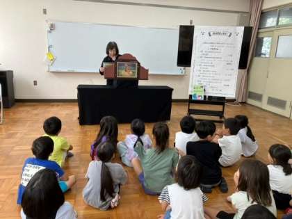 10月1日、あじさいブッククラブのおはなし会がありました。絵本や紙芝居など全部で6つのお話を読み聞かせしていただきました。
