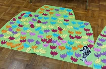 人のために優しくしたり、誰かのために我慢したりすることで、山に一つのきれいな花が咲くというお話でした。これまで誰かに優しくされたことや、自分が誰かに優しくしたこと、誰かが親切にしていたことなどを思い出して、花にその出来事を書き、4年生のみんなの花さき山を作りました。