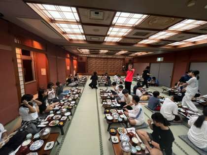 いよいよお楽しみの晩御飯です。とても豪華なメニューに、子どもたちは大興奮。感謝の気持ちを持って、いただきます。