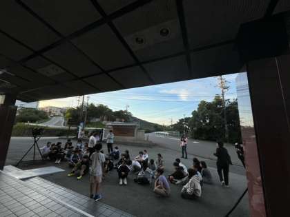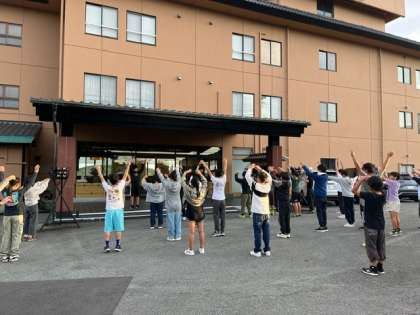 朝の集いです。ちょっと眠そうですが、ラジオ体操で目を覚まします。