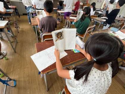 3年の国語、「サーカスのライオン」の学習の様子です。元気のいい群読が廊下に響き渡っていました。