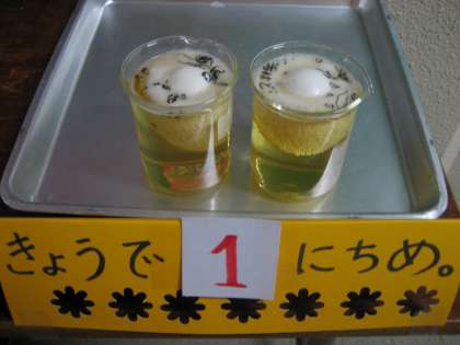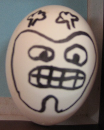 卵にマジックで絵をかきました。(卵を歯だと考えてほしいので)