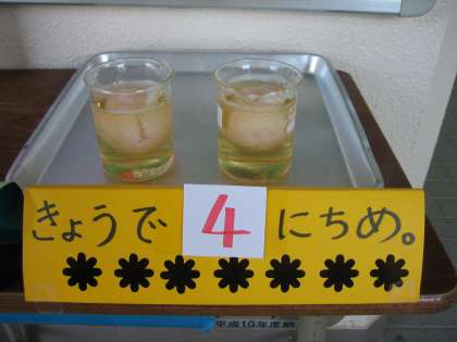 健康委員会の子どもたちが、それぞれのクラスで実験をしましたが、