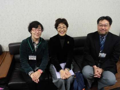 (写真 中央は 学校図書館コーデイネーターの吉井さん、向かって右側は 中央図書館 学校図書館支援 担当係長 戸倉さん です。)