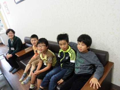 職員へのあいさつをされて、校長室に来た子ども達と一緒に撮りました。