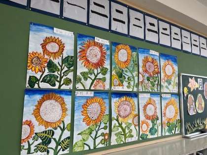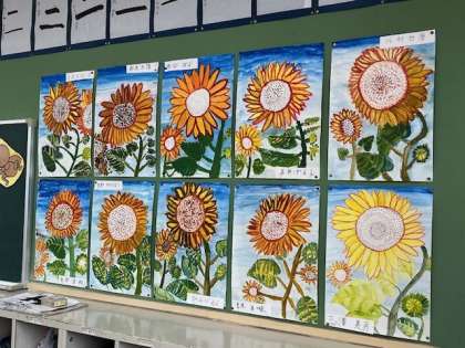 季節は秋ですが、3年の教室は、ひまわりが満開でした。ご紹介します。