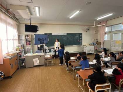 1学期から、続けている田島南小学校1年生とのオンライン交流が本日行われました。今日の交流は、「しつもんしよう」「こたえよう」でした。それぞれ聞きたいことを、聞きあい、答えあう交流活動です。両校ともに、いろいろな質問がでましたが、元気よく答えることができました。とても楽しい時間でした。