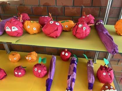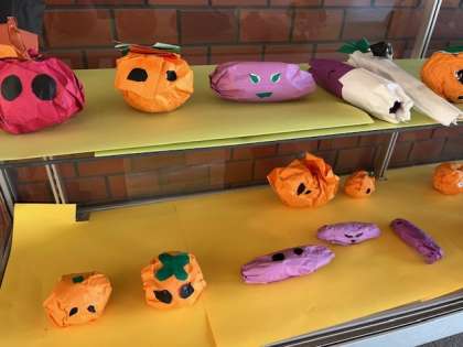 11月の玄関作品の紹介です。おいしそうな野菜や果物です。