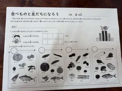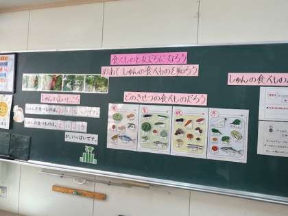 2年生の栄養指導の学習の様子です。「食べものと友だちになろう」という学習でした。