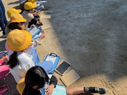 3年の理科「はね返した日光の進み方」の実験の様子です。はね返した日光がどのように進むか予想しながら、取り組みました。