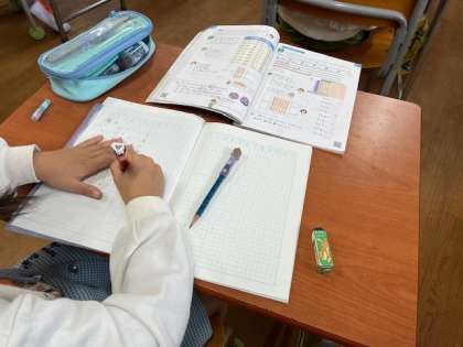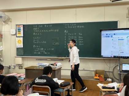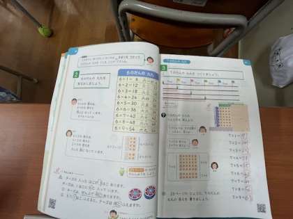 2年生は今、九九の学習に頑張っています。今日は、7のだんの九九の作り方を考えました。