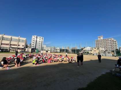 本日、たてわりスポーツフェスタが行われました。今年のスローガンは、『エンジョイ フェスタ』でした。どのグループも、思いっきり楽しむことができました。