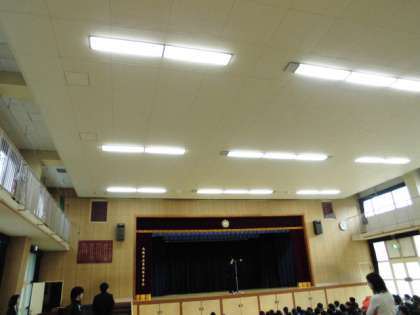 地震等で天井板が落下し、重大な事故にならないように天井板をはがし、天井照明を補強する工事です。