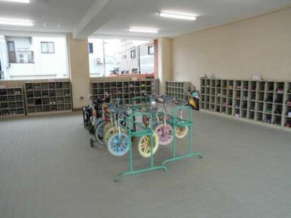 一輪車の保管場所は、玄関横のピロティに工事期間中は変更します。