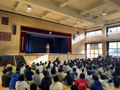 地域、保護者の皆様、明けましておめでとうございます。本年もよろしくお願いいたします。東桃谷小学校では、本日、3学期の始業式が行われ、たくさんの笑顔が集まりました。3学期は、あっという間に終わってしまいます。一日一日を大切に頑張ろうとみんなで確認しました。