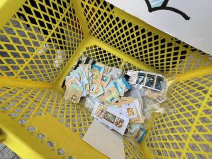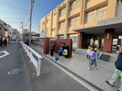 桃谷中学校では、世界の困っている子どもたちのために、毎年生徒会を中心に、書き損じたハガキや古切手を集める活動をしています。昨年末に、生徒会から東桃谷小学校にも協力してほしいとの依頼がありました。今朝の登校時に多くの子どもたちが協力していました。