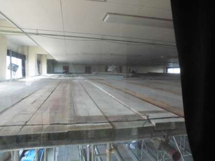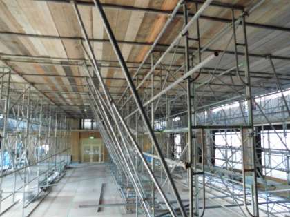今日から、講堂天井板をはがして改修していく作業が始まることと思います。