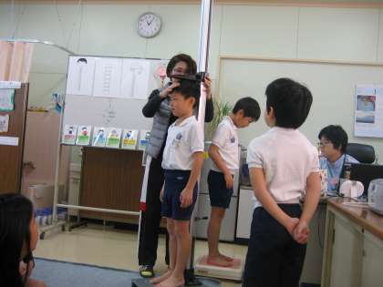 発育測定時だけでなく、ふだんから、保健室の前にある身長計や体重計で