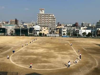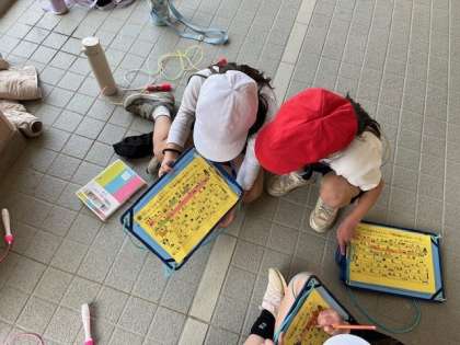 1年の体育の学習の様子です。今日は、かけあしを頑張りました。「がんばりカード」に頑張った分、色塗りをしていきます。