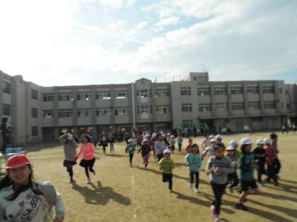 寒い中、子どもたちは元気よく運動場に出てきます。