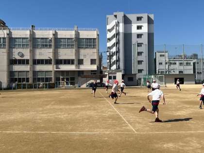 1年体育、「しっぽとり」の様子です。安全に、楽しくゲームをすすめるために、先生の話を集中して聞けていました。広い運動場を、思いっきり走り、楽しくゲームを行いました。