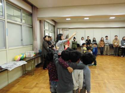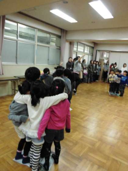1年生は、多目的室でPTC集会「室内ゲーム」を行っています。