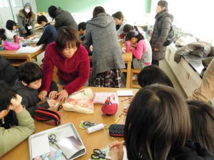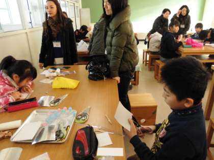 5年生は図工室で、PTC集会「万華鏡作り」に集中していました。