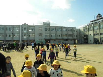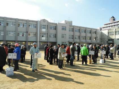 10時30分の避難訓練開始に備え、町会ごとに運動場に待機していただきました。