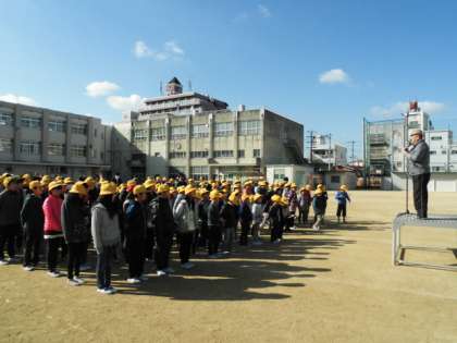 その後、校長、東桃谷地域まちづくり協議会理事長、生野区役所地域まちづくり課の防災担当の方の話がありました。