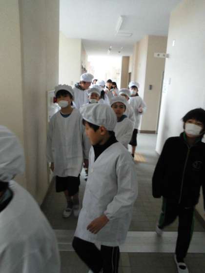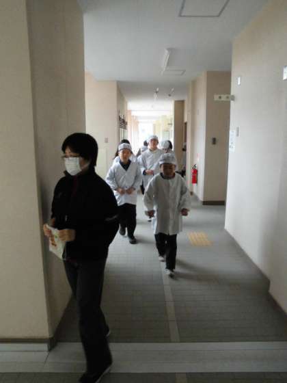 右側歩こう週間ということで、給食当番はどうかなと思い、廊下で待っていました。