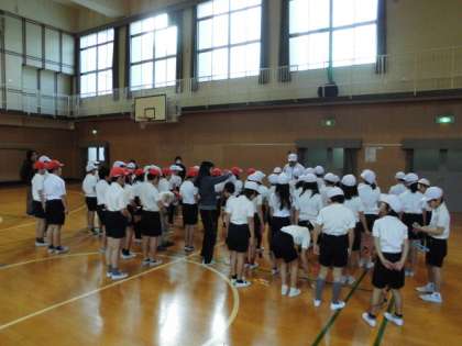 以前にも、なわとびの指導に来ていただいた山本先生(元大阪市小学校教育研究会 体育部部長)にご指導をいただきました。