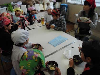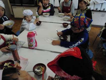 家庭科室で、低学年、高学年とも5班に分かれて行いました。